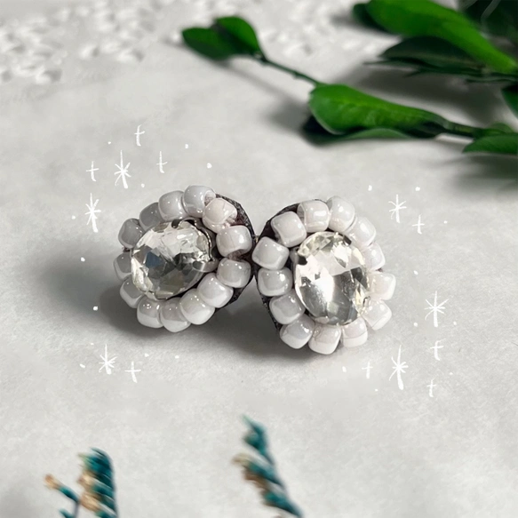 小ぶりなピアスですが、ビジューがキラキラお顔まわりを華やかに見せてくれます。